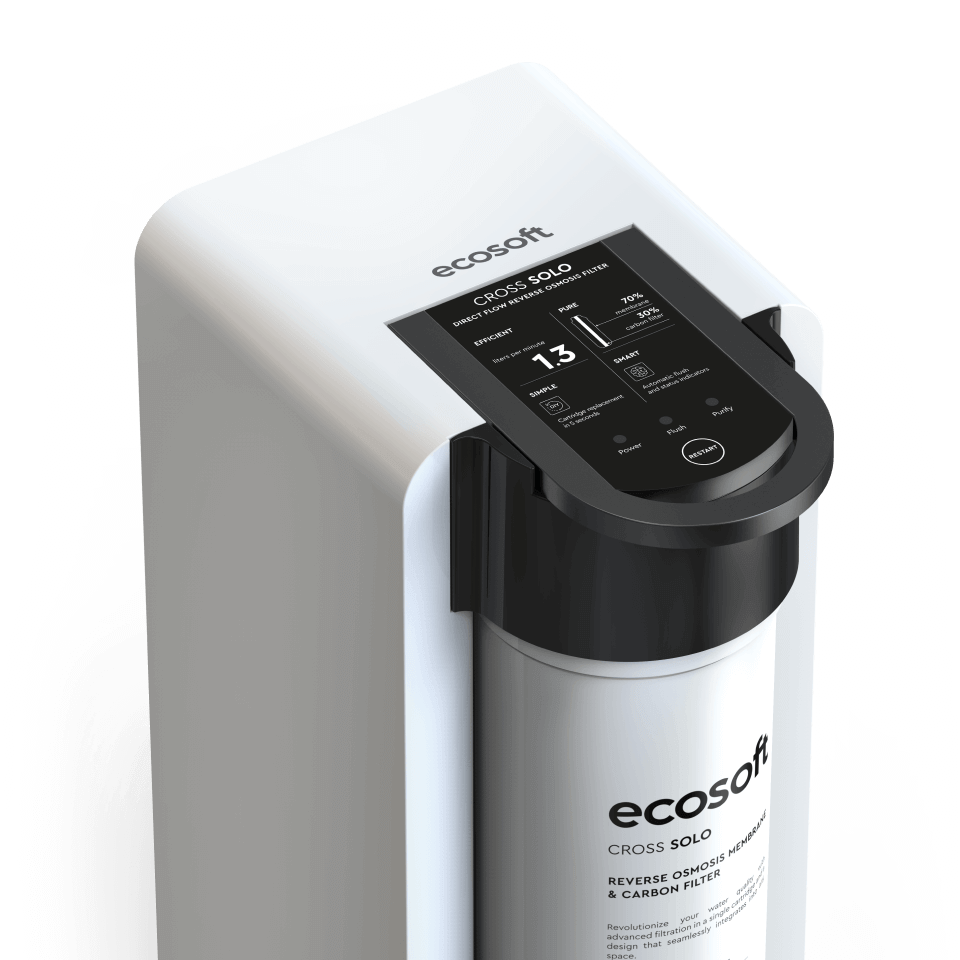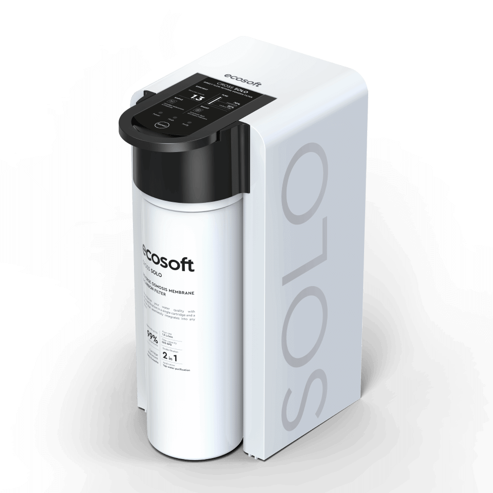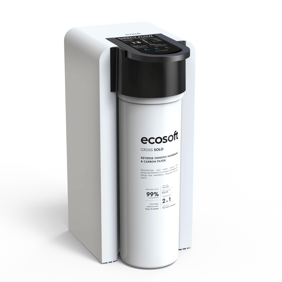 Sistemul Ecosoft CROSS Solo (MO3500PECO) este un sistem de purificare a apei cu osmoză inversă, ultra-compact și de înaltă eficiență, conceput pentru uz rezidențial. Ideal pentru consumul de apă potabilă și gătit, acest sistem furnizează apă pură, cu un gust excelent, direct de la robinet. Designul său elegant și compact se integrează perfect în bucătăriile de dimensiuni reduse, iar tehnologia avansată de osmoză inversă elimină până la 99% din contaminanți, inclusiv bacterii, virusuri și substanțe chimice nocive, cum ar fi PFAS. Cu o rată de recuperare a apei de 50%, CROSS Solo optimizează utilizarea resurselor, fiind o soluție ecologică și economică.
