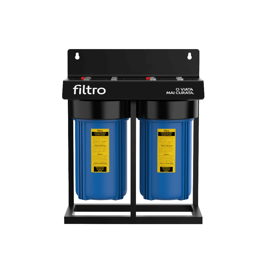 Problemele apei sunt rezolvate cu sistemul BIG BLUE 10" TWIN. Acesta este un sistem de prefiltrare pentru intrega locuinta.