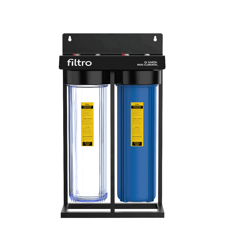 Problemele apei sunt rezolvate cu sistemul BIG BLUE 20" TWIN. Datorita carcaselor transparente veti putea observa cu usurinta gradul de incarcare al cartuselor.