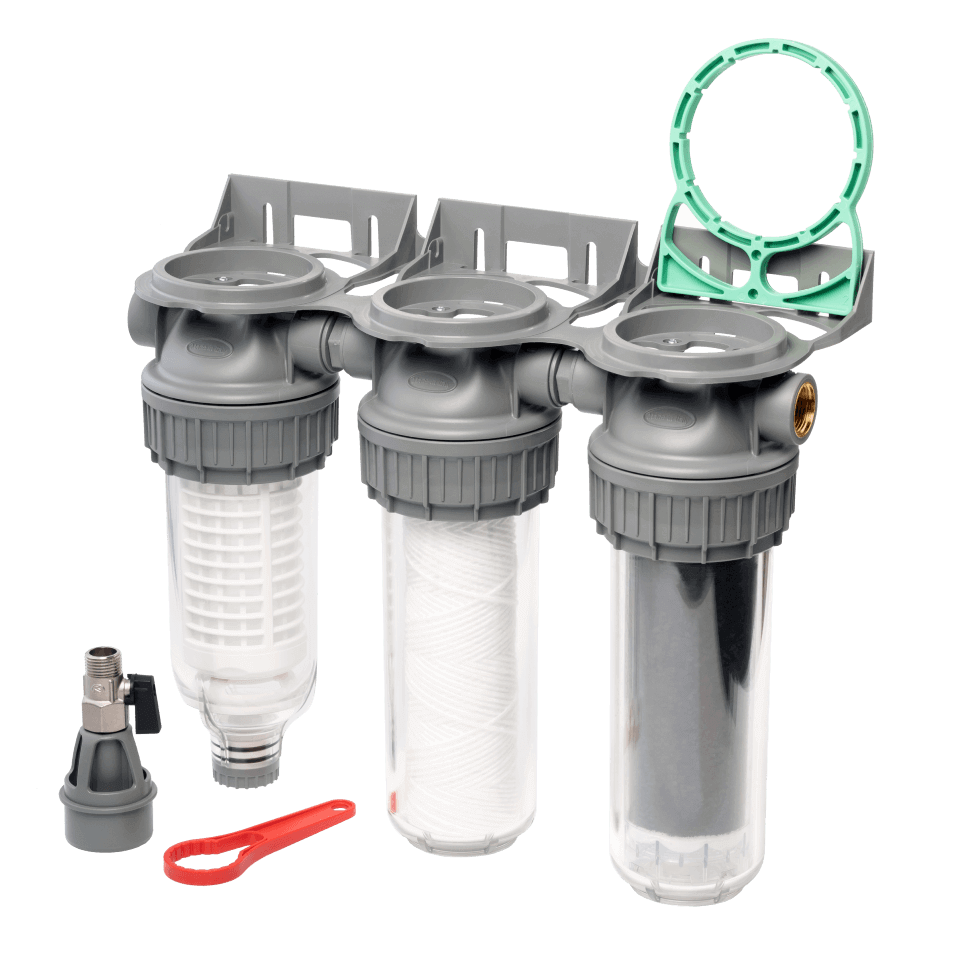 Filtrul Ecosoft 3P Grey Triplex 10" este o soluție eficientă, robustă și economică pentru pre-filtrarea apei de puț sau pluvială la domiciliu. Cu un design compact, rezistență ridicată la presiune și o carcasă transparentă pentru întreținere ușoară, produsul reprezintă o alegere excelentă pentru gospodăriile ce doresc să economisească apă potabilă și să mențină rețeaua conductelor curate.